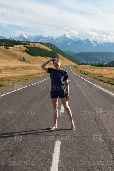 Женщина на Чуйском тракте в горах Алтая