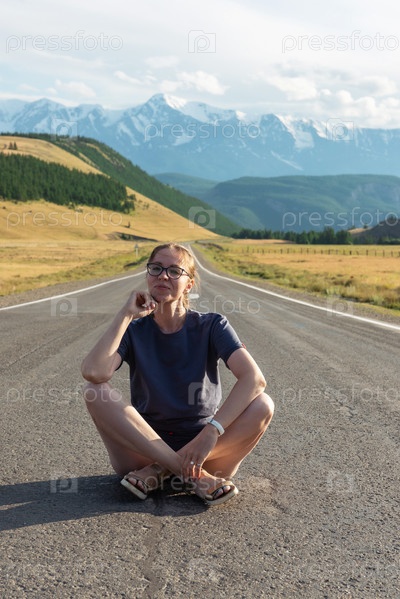 Женщина на Чуйском тракте в горах Алтая. Одна из самых красивых дорог в мире
