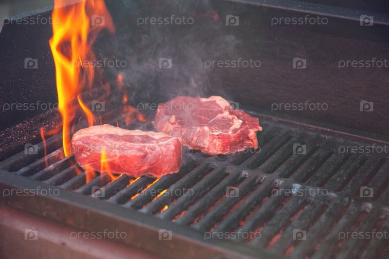 Говяжьи стейки с овощами на гриле с открытым пламенем