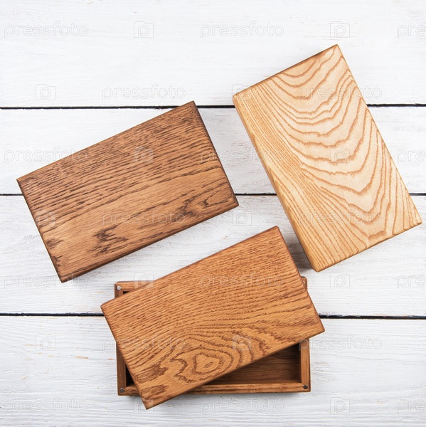 Деревянная фотокоробка для хранения фотографий на деревянном белом фоне