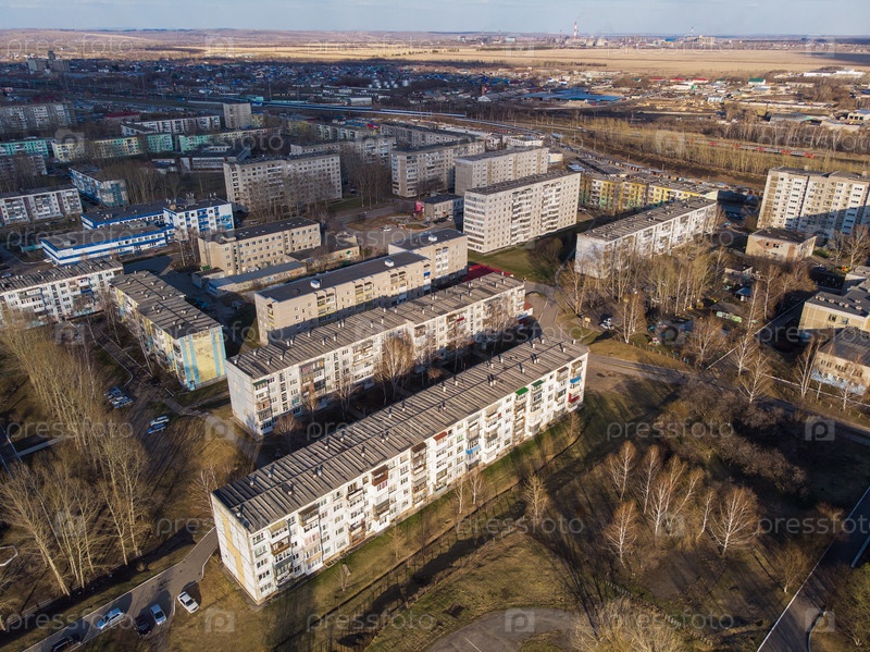 Вид с воздуха на город Заринск в летнем пейзаже, Алтай, Сибирь, Россия,