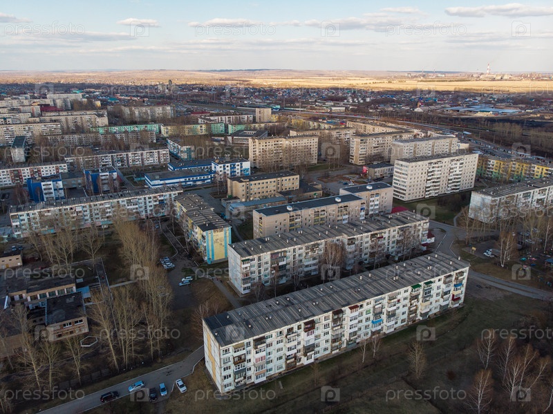 Вид с воздуха на город Заринск в летнем пейзаже, Алтай, Сибирь, Россия,