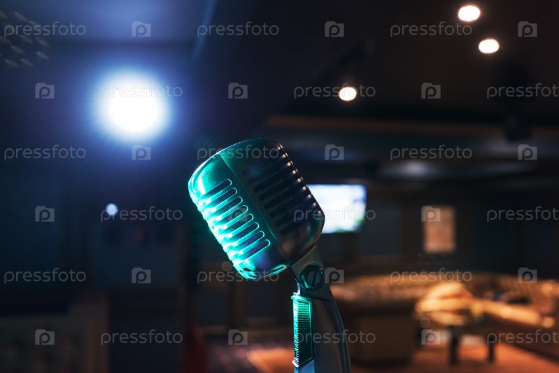 Ретро музыкальный микрофон на сцене в ночном клубе. Концепция шоу или представления
