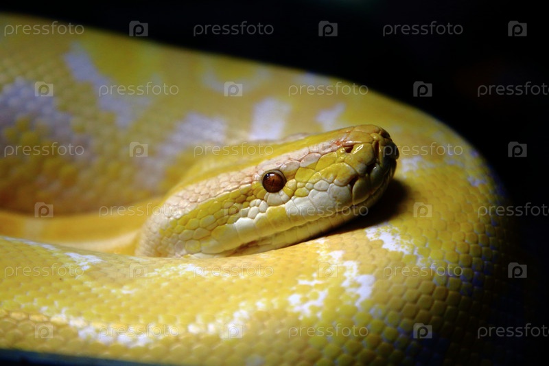 Тигровый питон крупным планом на темном фоне