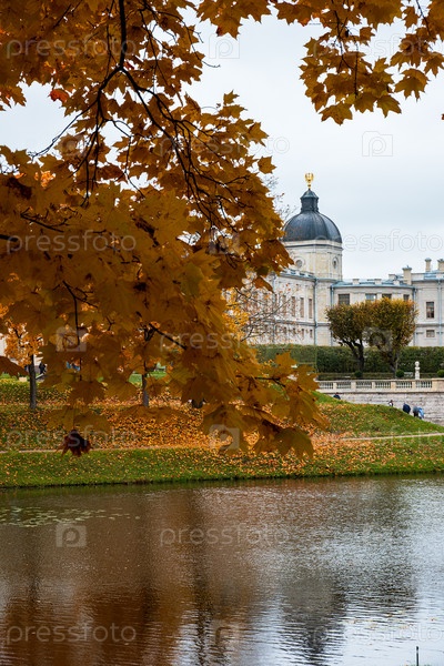 Гатчина, Россия — 13 октября 2024 г. Вид на Большой Гатчинский дворец из Дворцового парка осенью