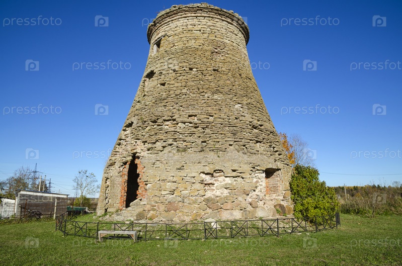 Руины известняковой мельницы в солнечный осенний день в поселке Первое мая Кингисеппского района Ленинградской области