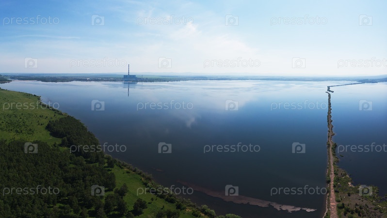 Вид с воздуха с беспилотника на ландшафт озера и дорогу