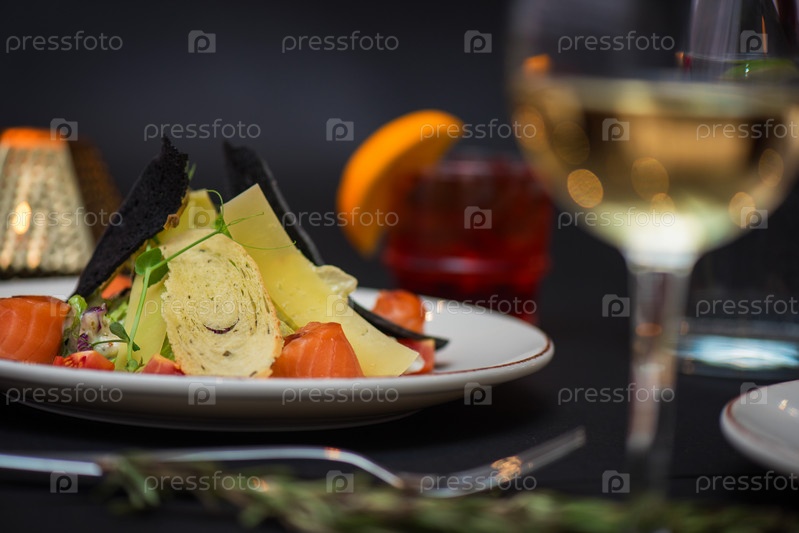Салат Цезарь с лососем. Вкусное ресторанное блюдо