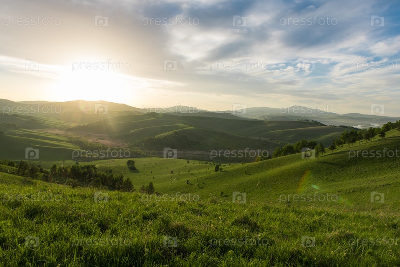 Красота рассвета на красоте долин, в горах Алтая