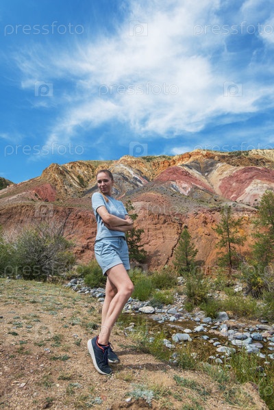 Женщина в долине Марса, пейзажи в горах Алтая, Кызыл-Чин, Сибирь, Россия