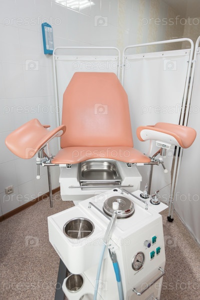 Гинекологический кабинет с креслом и другим медицинским оборудованием в современной клинике