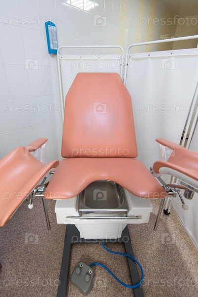 Гинекологический кабинет с креслом и другим медицинским оборудованием в современной клинике