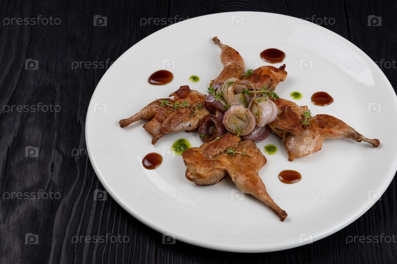 Перепела жареные с овощами