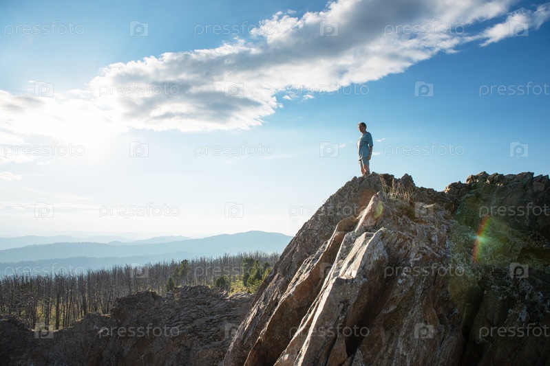 Внутренний туризм, путешествия, отдых и концепция свободы после пандемии - женщина на вершине Алтайской горы, красота летнего вечернего пейзажа