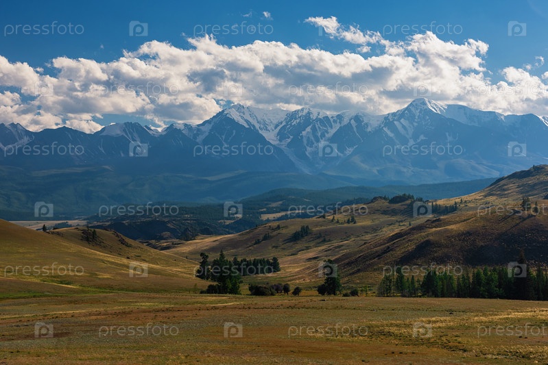 Курайская степь и Северо-Чуйский хребет на заднем плане. Алтайские горы, Россия