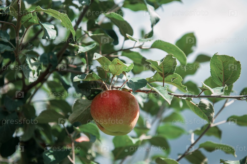 Яблоня с яблоками, органические натуральные фрукты в саду