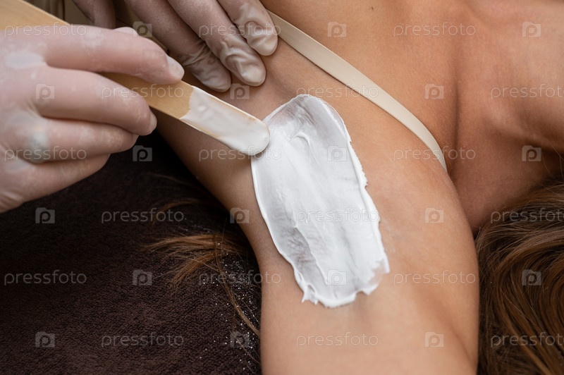 Косметолог в клинике красоты проводит процедуру эпиляции
