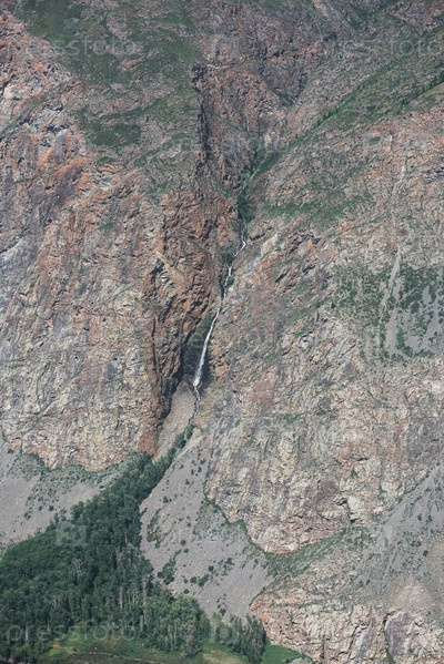 Водопад в долине реки Чулышман. Алтайские горы, Россия, прекрасный летний день