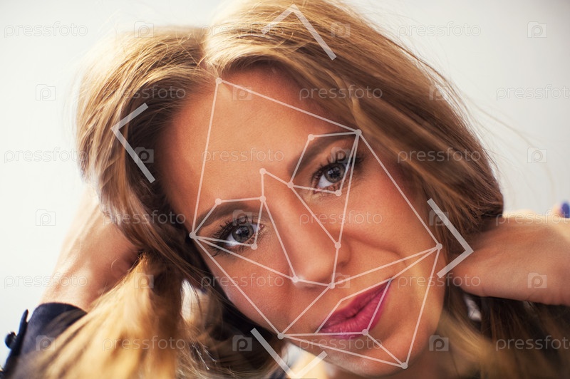 Концепция футуристического и технологического сканирования лица женщины для распознавания лиц