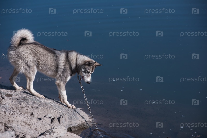 Хаски на берегу реки