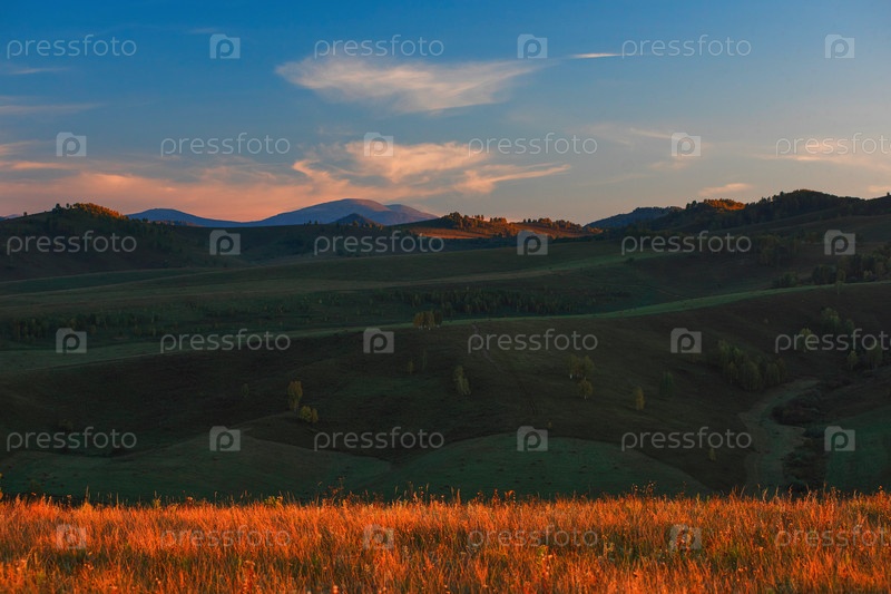 Красота летнего вечера в горах Алтая, панорамный снимок