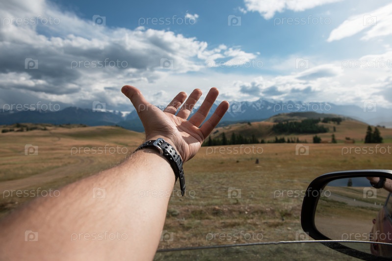 Крупный план руки мужчины-путешественника в автомобиле