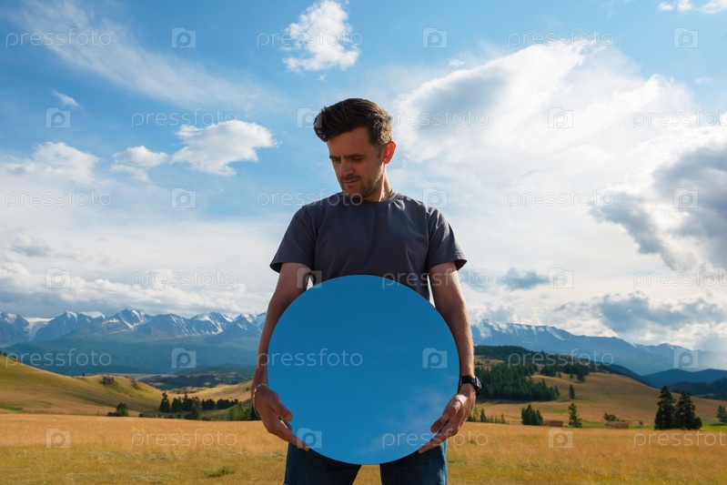 Мужчина стоит в горах Алтая летом