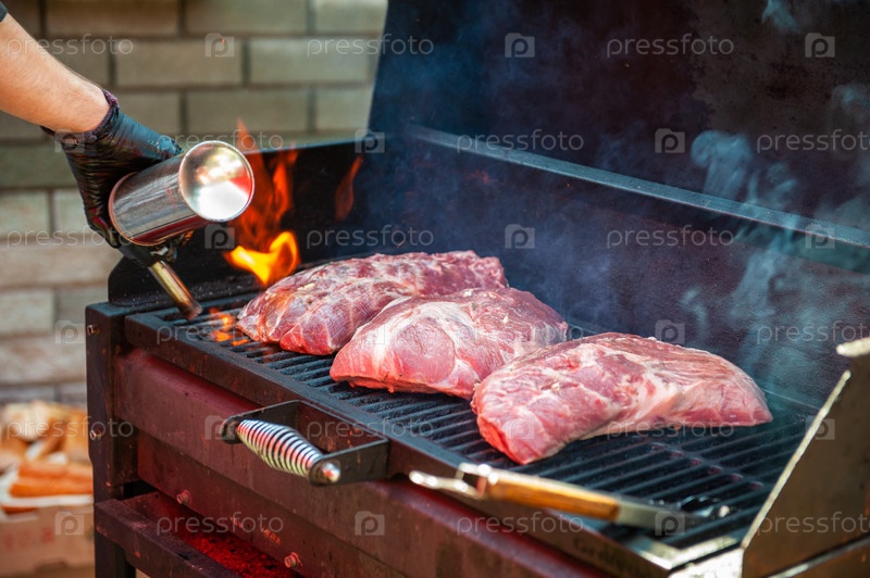 Стейки из свинины на гриле с пламенем