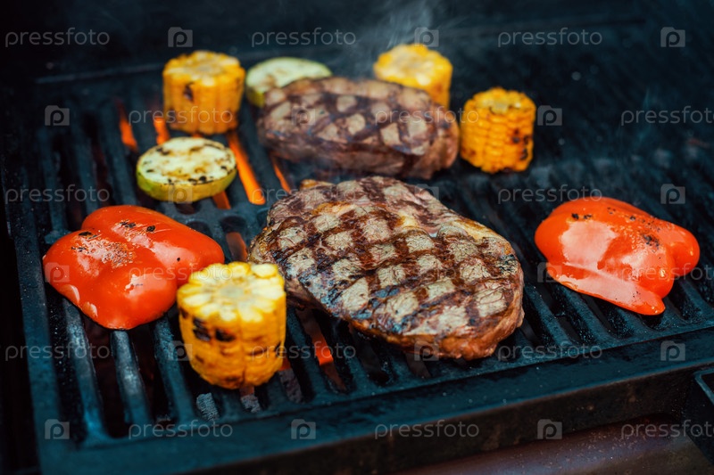 Говяжьи стейки на гриле с огнем