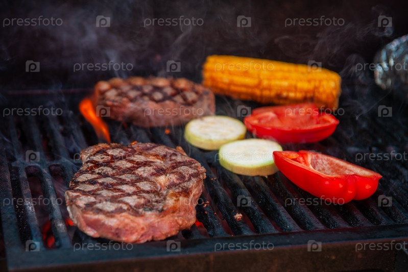 Говяжьи стейки на гриле с огнем