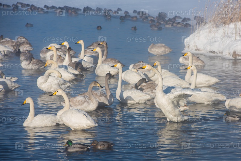 Красивые белые лебеди-кликуны