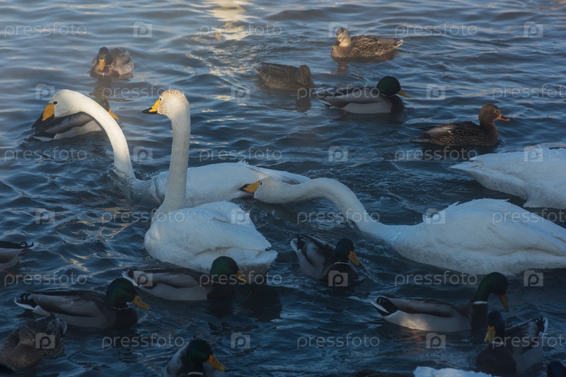 Красивые белые лебеди-кликуны