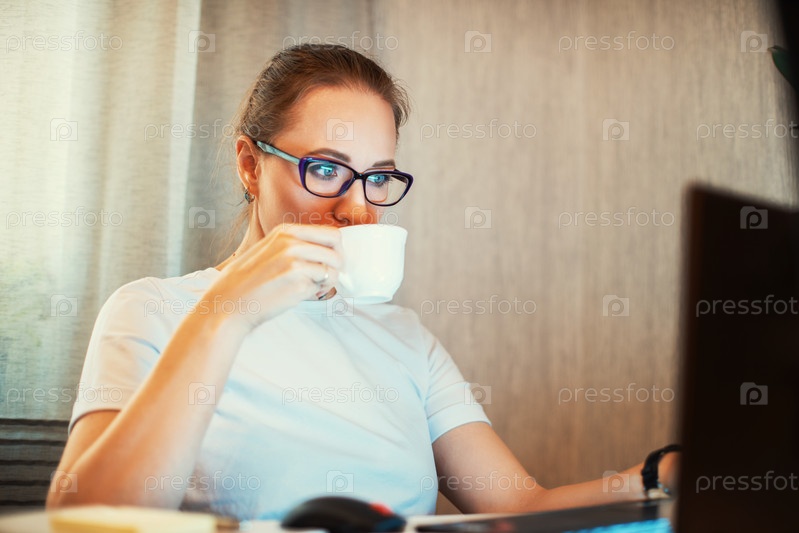 Концепция коронавируса. Женщина в карантине из-за коронавируса covid-19 работает дома. Защитная маска и дезинфицирующий спрей на рабочем месте