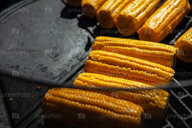 Профессиональный повар готовит кукурузу на гриле на открытом воздухе, концепция питания или кейтеринга