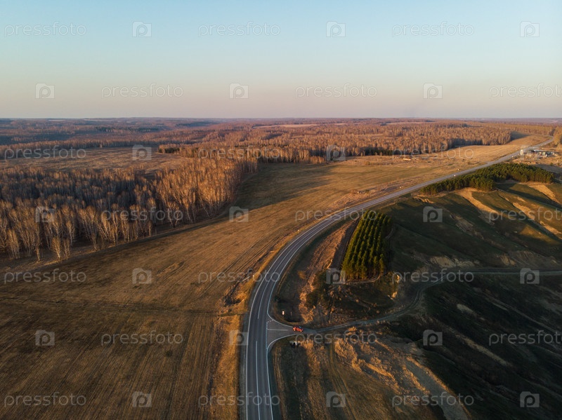 Вид с воздуха на дорогу в летнем пейзаже
