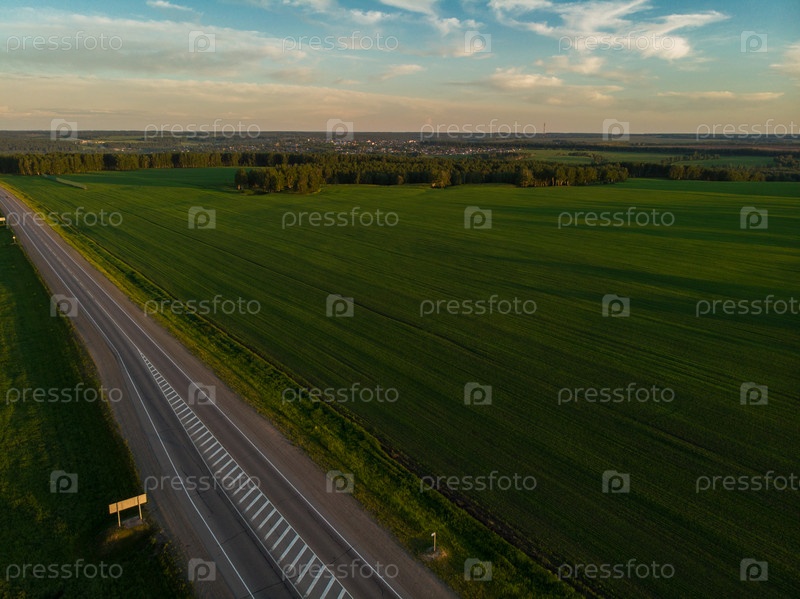 Вид сверху на дорогу летним вечером. Вид с дрона