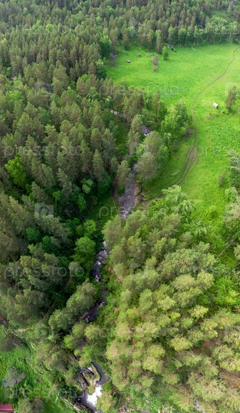 Аэрофотоснимок водопада в горах Алтая, Сибирь, Россия, сделанный с помощью беспилотника