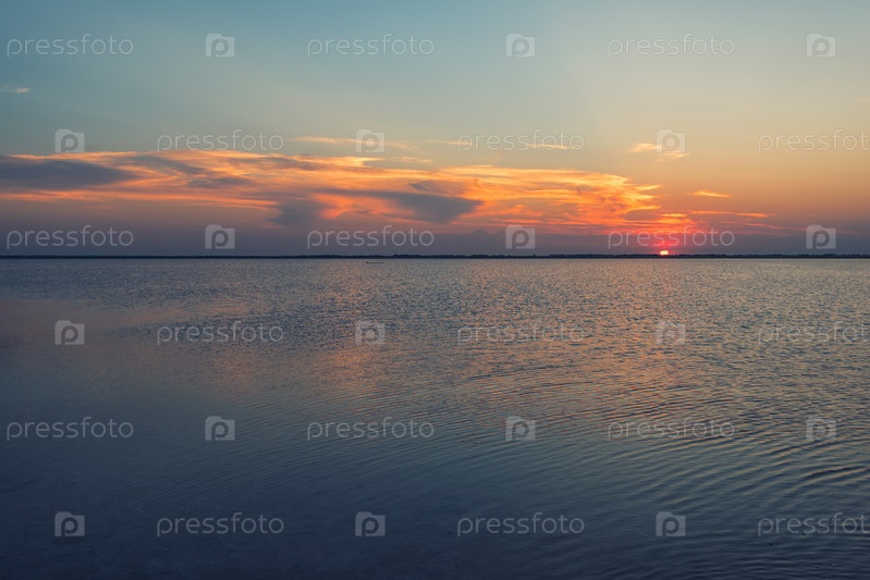 Красивый закат на соленом озере