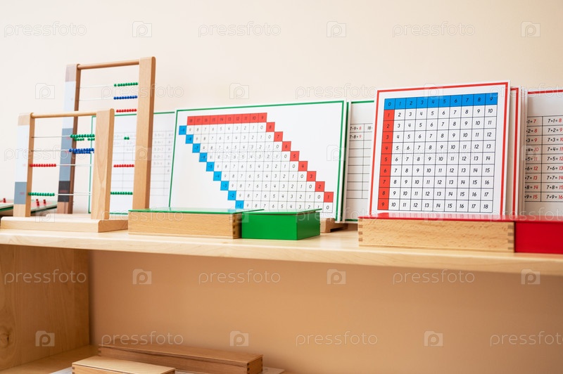Материалы Монтессори. Деревянная полка с материалами для занятий Монтессори