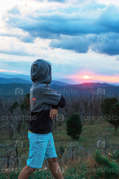 Мальчик вечером в горах Алтая
