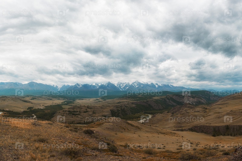 Лето в Курайской степи и Северо-Чуйском хребте Алтая, Россия. Пасмурный день