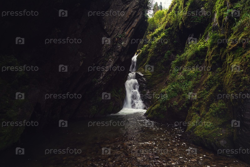 Водопад Эстюбе на Телецком озере в Горном Алтае
