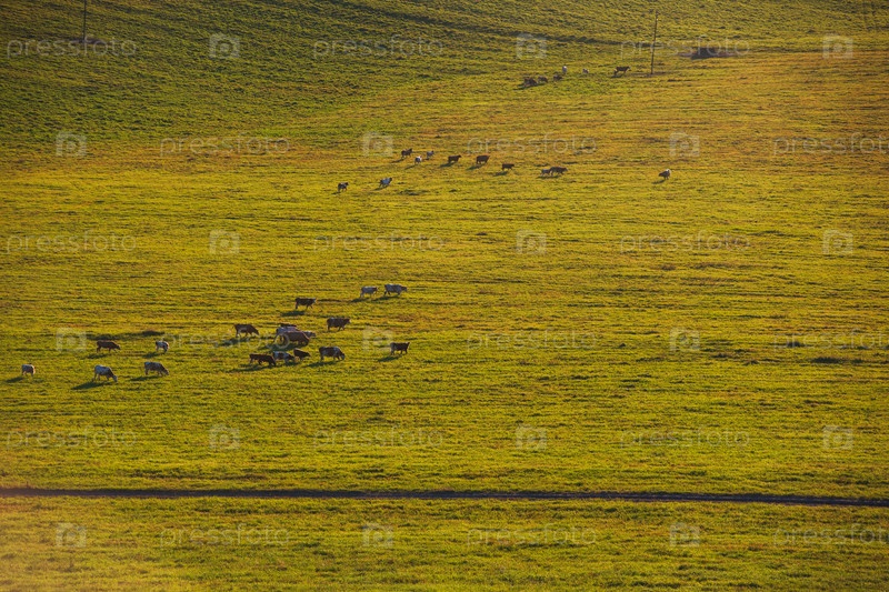 Коровы солнечным летним вечером