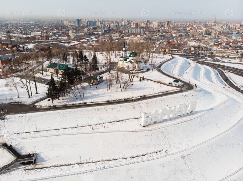 Аэрофотоснимок главного вида на город Барнаул, Сибирь, Россия