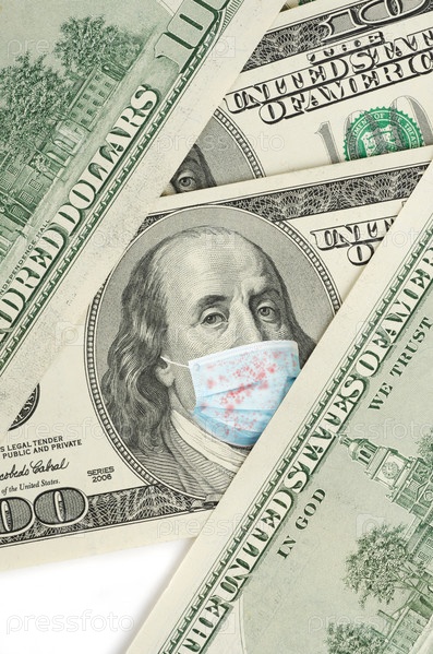 Банкнота достоинством 100 долларов с медицинской маской