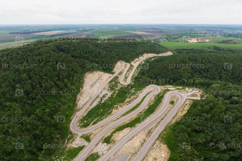 Вид сверху на извилистую дорогу в горах