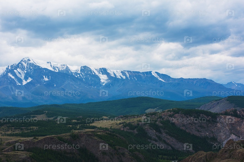 Лето в Курайской степи и Северо-Чуйском хребте Алтая, Россия. Пасмурный день