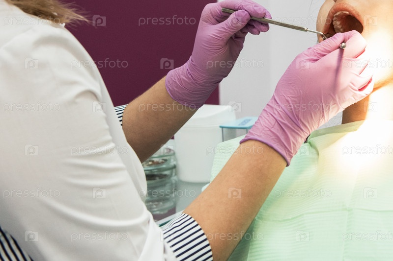 Стоматолог работает в стоматологическом кабинете, фотография крупным планом