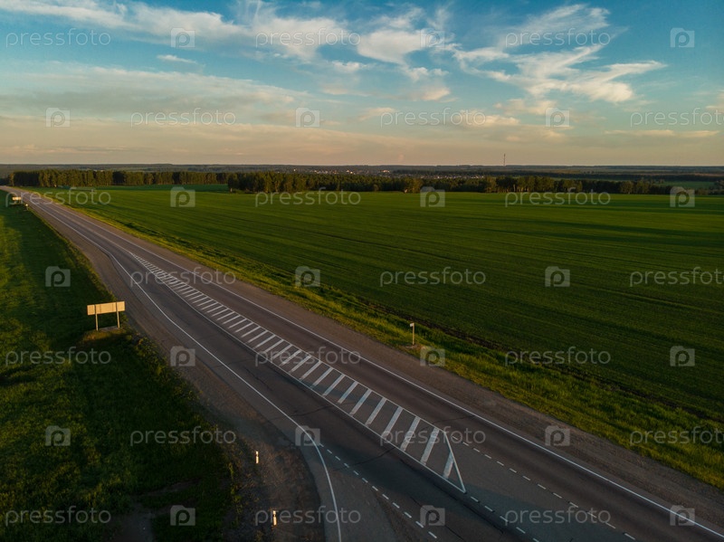 Вид сверху на дорогу летним вечером. Вид с дрона