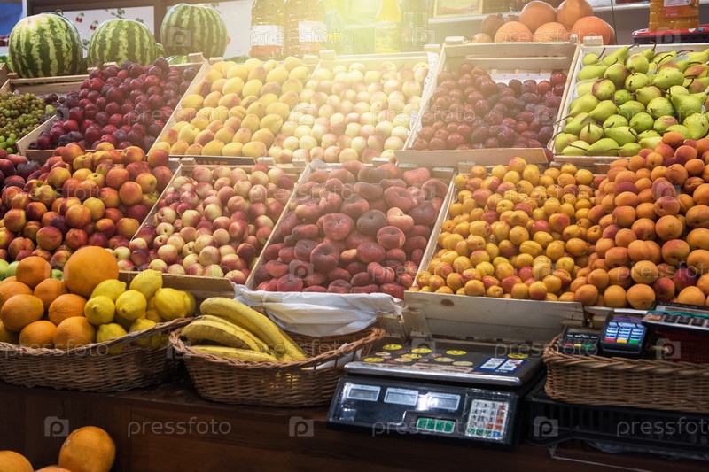 Ассортимент свежих фруктов на рынке